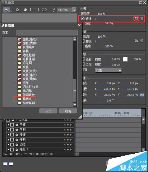 4、在內部濾鏡里選擇添加馬賽克濾鏡。
