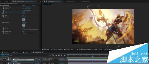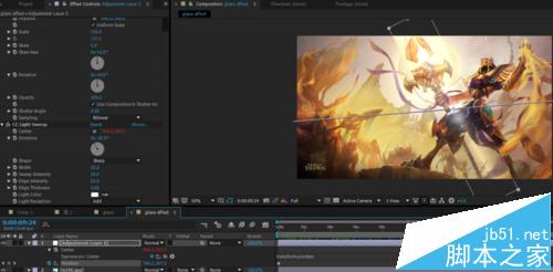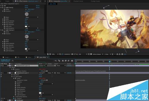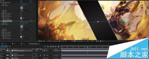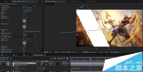 3、添加效果:CC Light Sweep,位置K幀,從左往右。掃光的中心寫(xiě)表達(dá)式,連接位置,這樣掃光就能隨著位置移動(dòng)了。