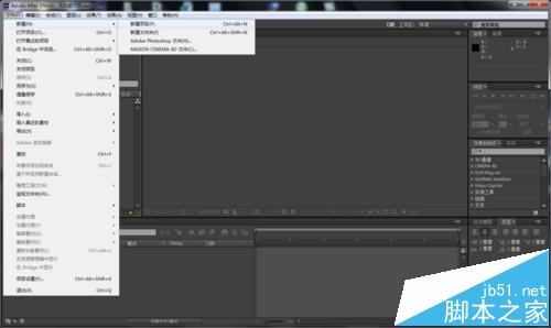 3、新建項(xiàng)目。在AE菜單上選擇【文件(F)】-【新建(N)】-【新建項(xiàng)目(P)】