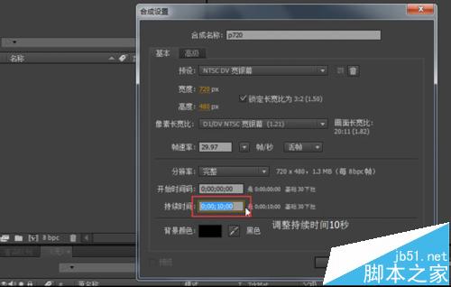 1、新建合成時長調整為10 秒