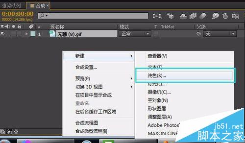 3、新建一個固態層作為合成背景,把背景拖放到最底層。