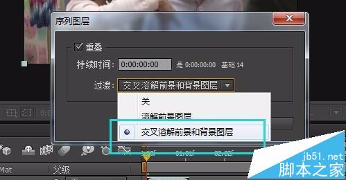 5、在選擇菜單上依次選擇【動畫】- 【關鍵幀輔助】- 【序列圖層】。窗口中選擇 交叉溶解前景和背景圖層。