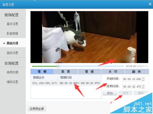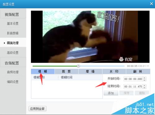 5、模糊選項,開始時間,結束時間,指的是模糊的區域,以及模糊區域模糊的時間。