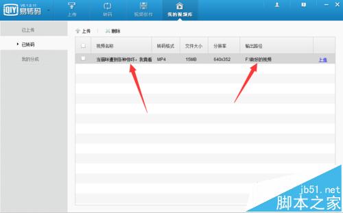 10、會出現我們做好的視頻,后邊是輸出路徑,根據自己需要選擇哦,也可以直接上傳視頻到愛奇藝。視頻后邊有個上傳鍵哦。