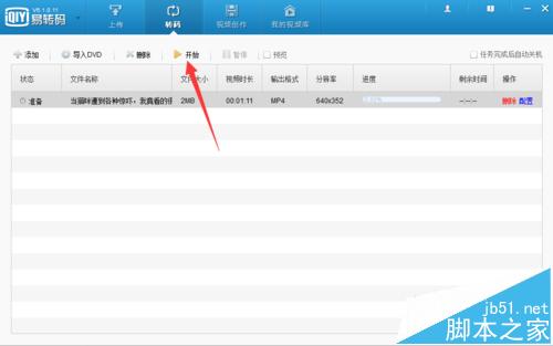 8、確定之后,會直接回到我們剛添加進去視頻的時候,點擊上方的開始