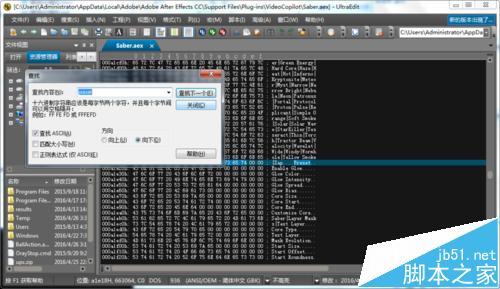 5、UltraEdit 打開需要翻譯的AE英文插件。Ctrl+F 查找需要翻譯的英文,比如saber插件第一個要翻譯的英文詞是Preset 。