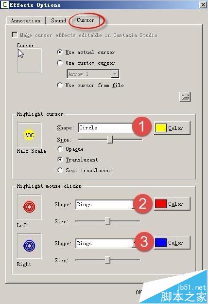 Camtasia Studio 在錄制視頻的時候,會給鼠標指針增加顏色,但是顏色默認只有紅黃藍三種色調,而且在編輯的時候還不可以修改顏色,只可以使用默認的顏色,那到底如何修改鼠標特效的顏色呢?