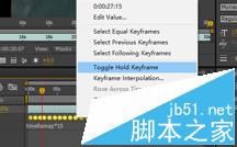 8、保持關鍵幀:選中所有關鍵幀,右鍵→(Toggle Hold Keyframe)切換保持關鍵幀。