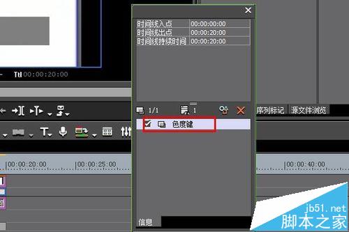 8、在信息面板中雙擊“色度鍵”,打開色度鍵設置窗口。
