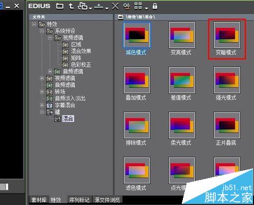 7、除了上述模式之外,edius還有很多其他的混合模式可以選擇。大家可以逐個嘗試。體會其中的不同。