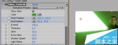4、然后手動(dòng)給 “start position”(放在手柄的位置)和“end position”(放在劍尖的位置)k幀