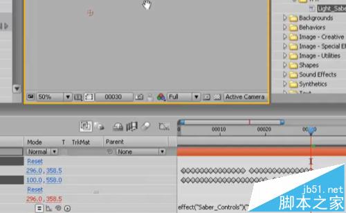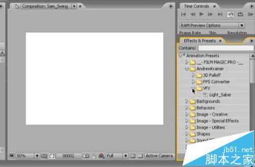 2、打開快速搜索窗口 找到VFX預(yù)設(shè),將這個(gè)“light-saber”拖到固態(tài)層上