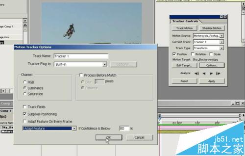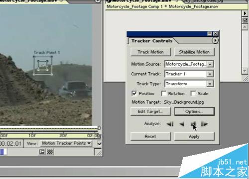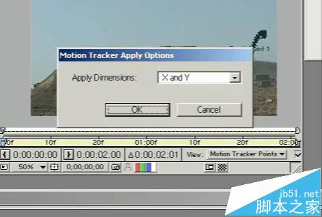 4、出現的特效對話框,選擇“Track motion”選項,視頻中出現跟蹤點,將跟蹤點放到視頻中可以跟蹤的位置(最好是視頻中遠處的位置,這樣有縱深感。),點開Options 修改參數
