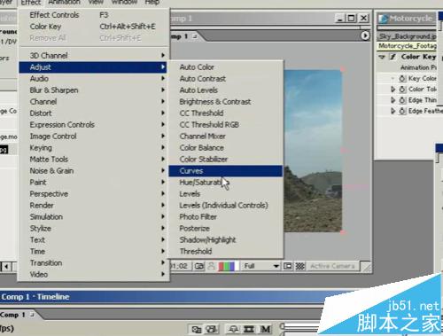 8、這時要將視頻素材復制一層放到天空圖層的上面,利用摳像工具將天空扣掉。選擇 吸管 點擊 天空 調整下面的參數