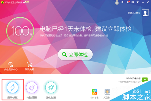 打開360安全衛士,點擊左下角“查殺修復”。