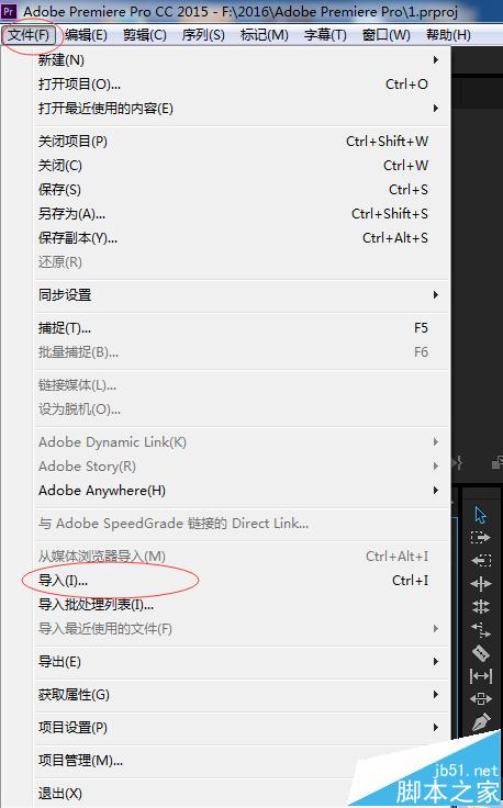 2、點擊【文件】-【導入】,導入想要編輯的視頻素材,點擊【打開】,將文件導入到【項目】窗口中