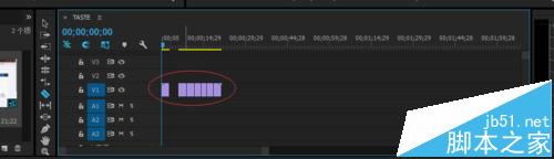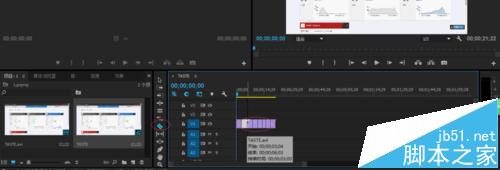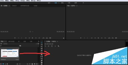 3、在【項目】窗口中選中素材文件,將其拖曳至右邊的【時間軸】窗口中