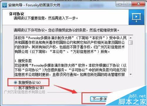 2、下載完focusky后,雙擊下載好的軟件程序,點(diǎn)擊下一步進(jìn)行安裝軟件。