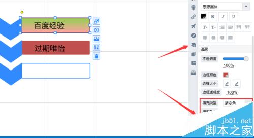 8、如果對于我們來說。樣式的背景顏色太單一了,這樣導致我們的藝術(shù)圖形沒有多樣性,所以這里我們可以選擇設置漸變色,這里我們下拉選擇下面的高級,這里我們可以看到填充類型選擇漸變色,然后顏色搭配根據(jù)自己設置就可以了。