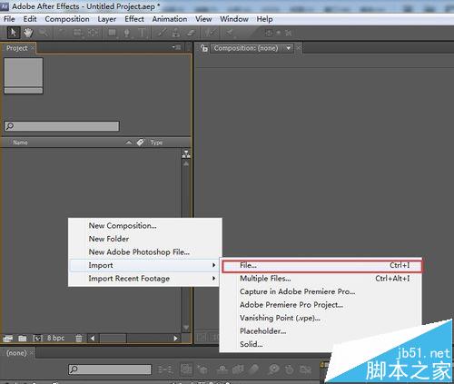 5、打開AE軟件,點右鍵導入文件,