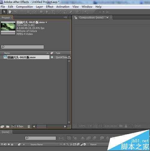 7、這時候AE就能打開MOV的文件了。