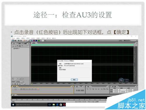 Win10或Win7 中AU3 不能錄音的問題解決,在Window10(或Win7)中打開Adobe Audition 3,會看到下面這個對話框。如何解決呢?百度一下,可以看到很多種解釋,經筆者測試最主要是從以下兩方面入手: 檢查AU3的設置和檢查錄音設備的設置。