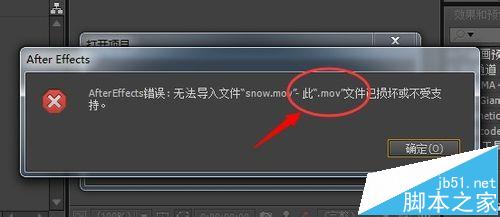 AE提示:此“.mov”文件已損壞或不受支持,無法導入mov格式。