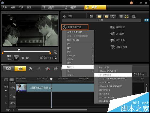 4、編輯好了,可以導出視頻了。選擇“分享”-“創建視頻文件”,輸出的視頻選項也有很多,可按個人需求來選擇。