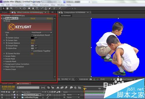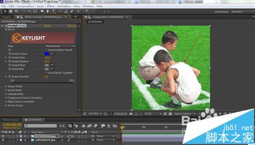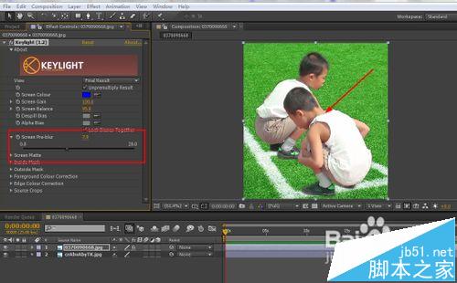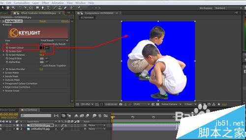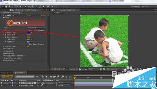 3、選擇刪除的顏色。在keylight控制面板中有一個屏幕色的選項,點擊后面的吸管按鈕,在素材上面選擇不要的顏色單擊即可。打擊后選擇的顏色就自動的刪除了。