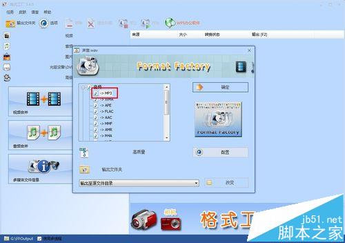 6、只是默認輸出的是WAV格式的文件,我們要想要MP3文件,那就需要格式轉換的幫忙了。操作很簡單,選擇目標格式MP3即可。