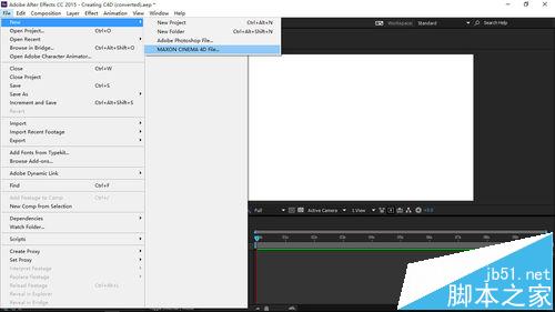 2、運行File > New > MAXON CINEMA 4D File新建一個C4D文件,命名為C4D。