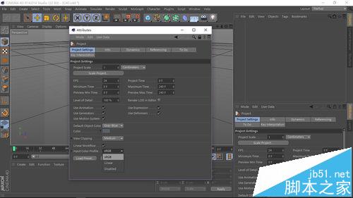 4、匹配FPS為AE中的24幀,Maximum Time為AE中的10秒即240幀,Preview Max Time隨意,我這里同樣設置為240幀,其他選項默認勾選,勾選Linear Workflow,Input Color Profile設置為sRGB.