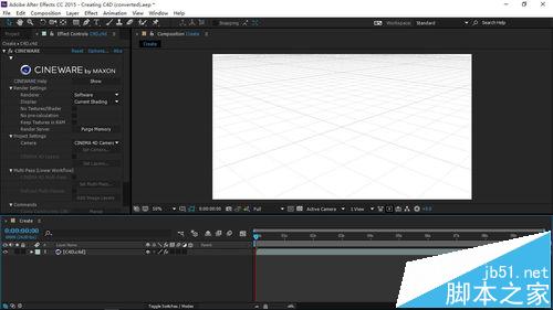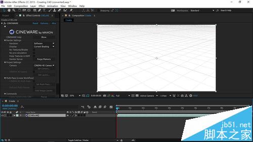 7、回到AE,拖動C4D文件到合成,效果如圖,當前C4D已經匹配了AE的設置,但AE有些選項任然沒匹配完成。
