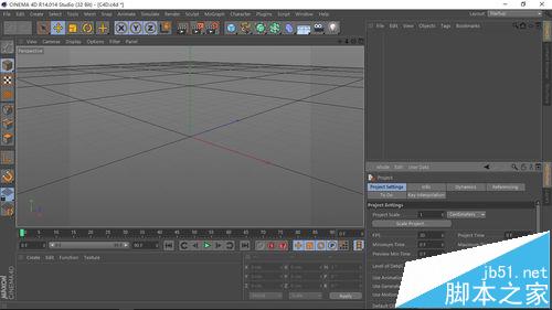 3、只是會自動打開C4D工程(注意一下現在的顯示狀態),默認會顯示工程設置(右下角的Project就是),如果沒看到設置面板,可以Ctrl+D打開,但太小不容易觀看,我們點擊最右側的+號按鈕單獨顯示工程設置面板。