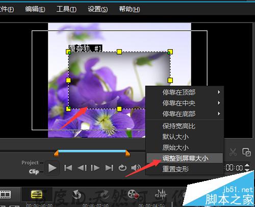 3、把素材拉入到覆疊軌后,選中這個素材。這時就可以看到在預覽窗口的界面中出現一個圖片的顯示輪廓。在上面點擊右鍵,把這個圖片調整到屏幕大小。接著在圖片上面點擊保持寬高比。
