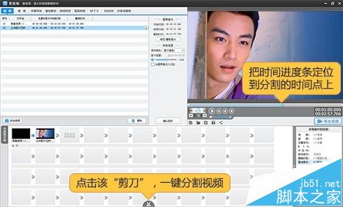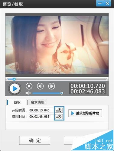 在“視頻”面板,點擊“添加視頻”按鈕,導入視頻。使用主界面底部的 “超級剪刀手”圖標(快捷鍵“Ctrl”+“Q”),對視頻快速分段。或在添加視頻時,彈出的“預(yù)覽/截取”對話框中,使用帶左箭頭的拾取小按鈕,截取視頻。