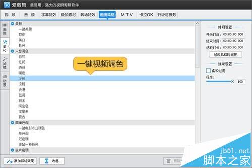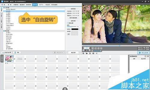 在“畫面風格”面板,點擊左側(cè)“畫面”欄,選中“自由旋轉(zhuǎn)”選項。在界面中央的“效果設(shè)置”欄里,設(shè)置視頻旋轉(zhuǎn)角度。最后,點擊“添加風格效果”按鈕,即可旋正視頻。