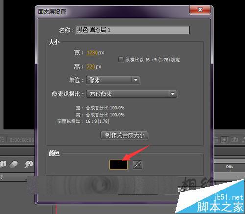 2、合成新建好后,再面板中再新建一個(gè)固定層。在面板的空白處點(diǎn)擊新建--固態(tài)層。在彈出的固態(tài)層中默認(rèn)的是上次使用過(guò)的顏色。這里可以在它的的顏色上面更改為默認(rèn)的黑色。