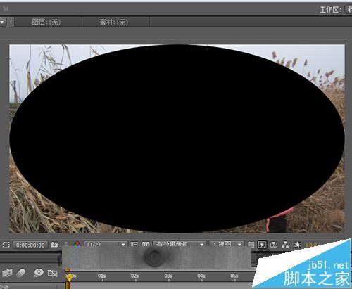 7、選擇橢圓形遮罩工具后,在遮罩的地方就是選中的遮罩形狀。在這個(gè)遮罩形狀上面雙擊一下,就會(huì)在自動(dòng)的變?yōu)闄E圓形遮罩。