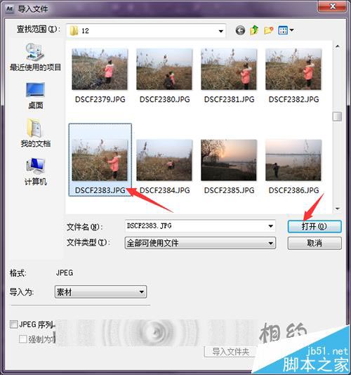 3、導(dǎo)入相片或圖片。在項(xiàng)目面板中點(diǎn)擊右鍵,選擇導(dǎo)入——文件。在打開(kāi)的導(dǎo)入文件的界面中選擇想要處理的相片后,點(diǎn)擊打開(kāi)。