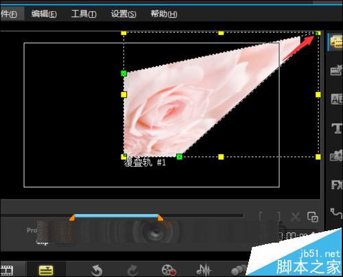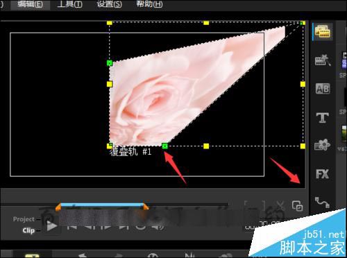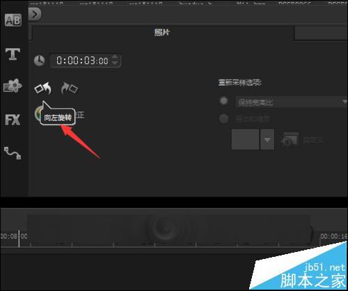 13、在覆疊軌上面選中圖片。點擊右邊的Options。接著在彈出的界面中選擇編輯。點擊編輯之后,就可以看到在編輯的界面中有一個向左和向右的旋轉符號。點擊其中的向右或向左旋轉。就可以讓圖片正常的顯示。