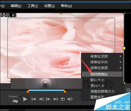 5、當點擊調整到屏幕大小后,可以看到現在的素材還是有些變形的。接著在圖片上面點擊右鍵,在列表中選擇保持寬高比。進行了這一步的操作就可以看到現在的圖片恢復到正常。