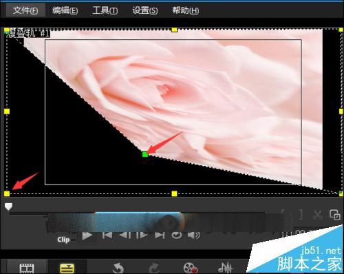 9、把它的位置固定在預覽窗口的右上角。接下來把右下角的這個綠色的點擊也把它移動到窗口的右下角。在移動點的時候可以準確一些。和上面的線大致一致.