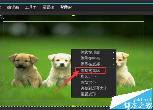 6、點擊第一張圖片,點擊選項,把變形素材前面的方框打勾,然后鼠標放在屏幕上右鍵,在彈出的菜單中點擊調整到屏幕大小,然后再右鍵,再次彈出菜單,點擊保持寬高比,如圖所示。