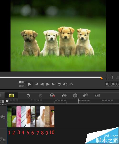 5、這時,十張圖片就都在視頻軌上了,我們還要對這十張圖片做進一步處理,如圖所示。