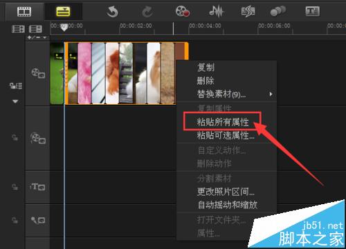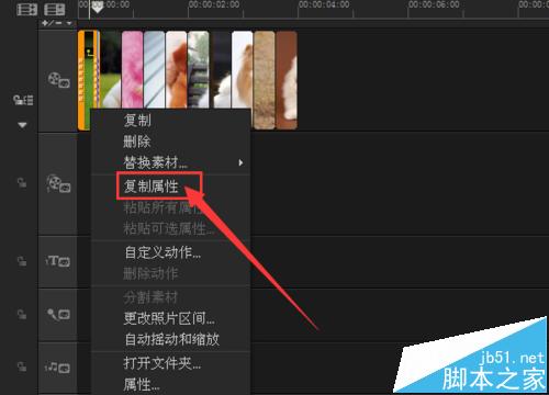 7、然后點擊第一張圖片,鼠標右鍵,在彈出的菜單中選擇復制屬性,然后再點擊第二張圖片,再鼠標右鍵,在彈出的菜單中選擇粘貼所有屬性,如圖所示。