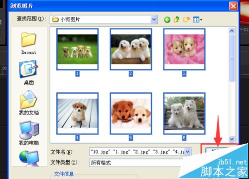 3、彈出一個窗口,找到你下載的小狗圖片,全部選中,單擊打開,如圖所示。
