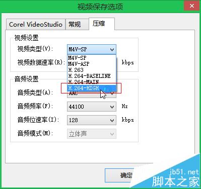 4、在“壓縮”中選擇“H.264-HIGH”。