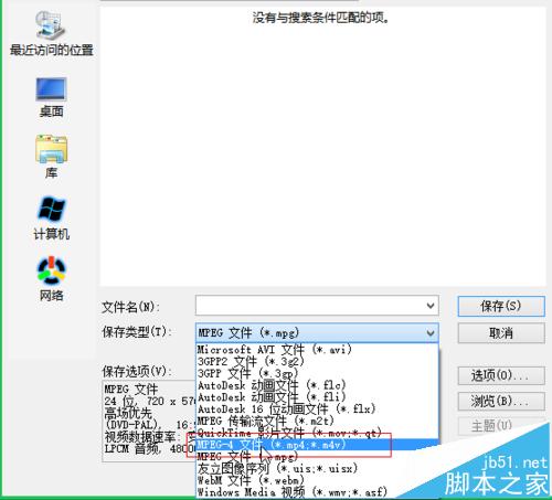 3、選擇“MPEG-4”文件后,點擊“選項"。