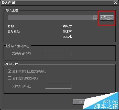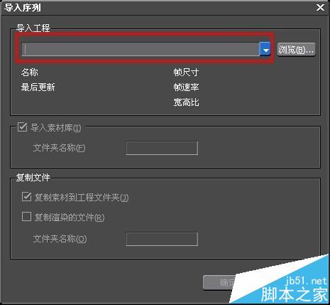 2、打開(kāi)導(dǎo)入序列窗口之后,我們?cè)趯?dǎo)入工程選項(xiàng)里選擇之前保存的另一個(gè)工程。